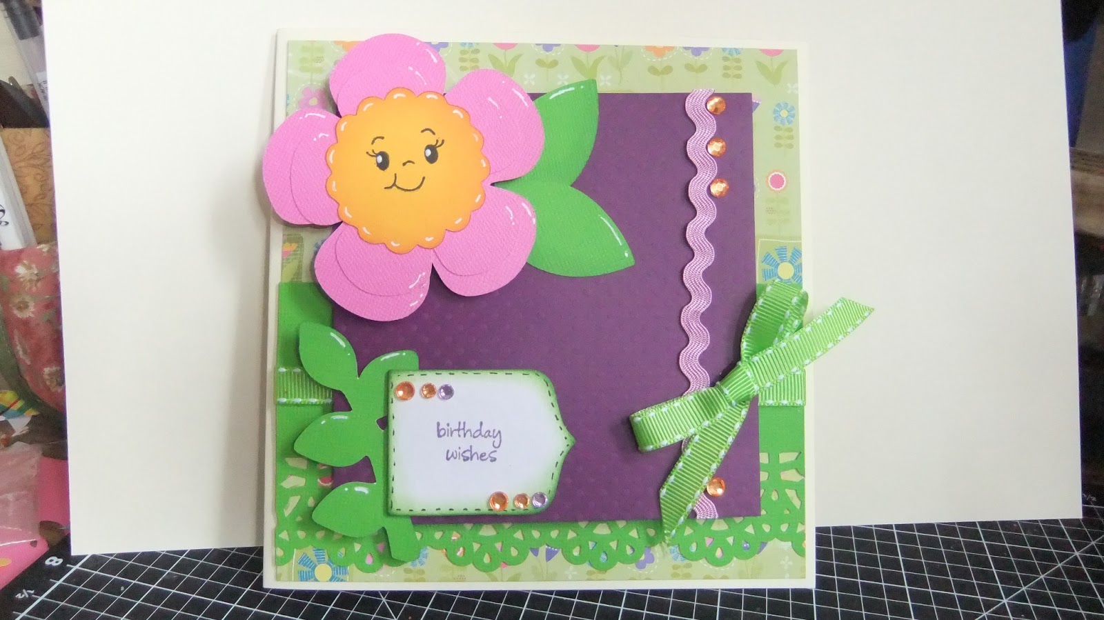 And lastly I did a wobble card with a Peachy Jeen face. the flower wobbles, I did a short video of the card in action, not sure what wobbled more, my filming or the card.lol so here is a pic of just the card.