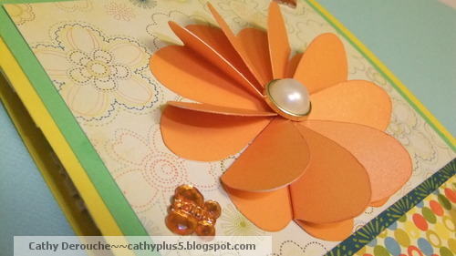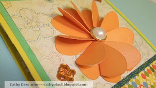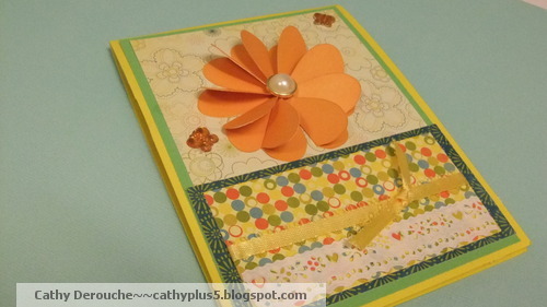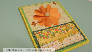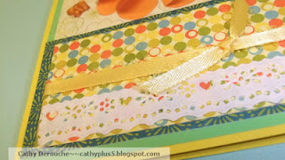 For my project today, I decided to make a POP UP card, using a flower that I saw in the Close To My Heart Idea Book, It is very simple and fun. You basically cut a bunch of hearts, all the same size, score them in half, and then lay them in a circle and glue them down. So I did that and added a pearl to the center. I used Core'dinations card stock for the base and mat. then I used patteren paper from Bo Bunny Hello Sunshine collection. Across the bottom, I used a lacey paper strip I got from a good friend, which I ran through my Zyron sticker maker and adhered to the bottom of the card .