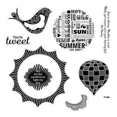 I set the card up with t mats...one with the clouds and umbrella, which has small droplets on it, not sure if it is acrylic or not, I got them in a clearance bin at discount store nearby, they are meant to look like rain drops.  On the center mat, I placed the sentiment. which comes from a stamp set from Inkadinkado.  I used the cartridge, 3 Birds on Parade to cut the water fountain, and  The  Alphabet cartridhe that comes with the Cricut E2 to cut the umbrella.